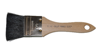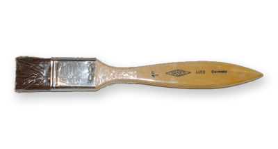 A complete line of the highest quality flat brushes. These brushes are ideal for 'burinishing' or 'cleaning-off' genuine and metal leaf surfaces after gilding.