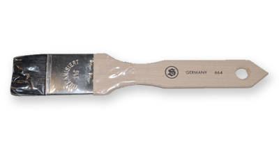 Flat Wash Brush #664 Flat Wash Brush, 1/2" Black Ox-Short Hair. Made in Germany. These high quality brushes are square and have a metal ferrule and a raw wood handle. Available in various sizes.